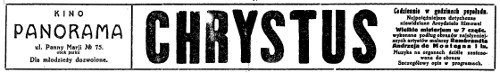 Reklama filmu: „Chrystus”, Goniec Częstochowski 1922, nr 136, s. 1