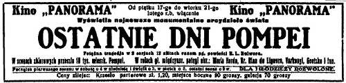 Reklama filmu: „Ostatnie Dni Pompei”, Goniec Częstochowski 1928, nr 40, s. 3